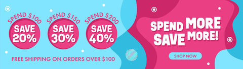 Buy-More, Save-More Sale: Spend $100 Get 20% off, Spend $150 Get 30% off, Spend $200 Get 40% off
