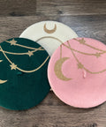 Vegan Felt Beret - Gold - Hanging Moon and Stars