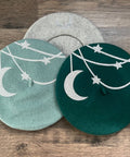 Vegan Felt Beret - Silver - Hanging Moon and Stars