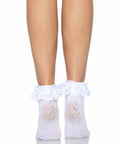 You're sure to feel irresistibly sweet in the Lei Lace Ankle Socks by Leg Avenue. Featuring a beautiful crochet pattern with angelic heart lace at the ruffle, this is an elevated classic you need in your collection. Truly the perfect pair of ankle socks!