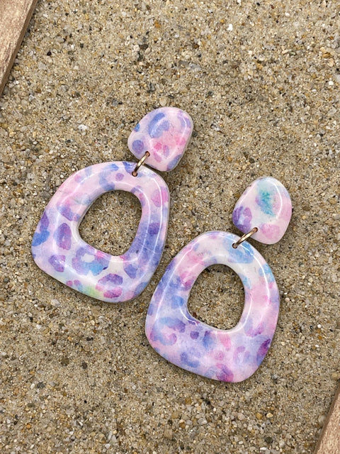Mystical - Multicolored Leopard Printed Dangle Earrings: Handmade Polymer Clay