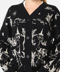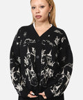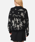 Royal vibes with a gothic twist. If little-you dreamed of being a princess but grown-you wears all black and listens to spooky playlists… this cardigan is your fairytale come true. With its soft cotton knit and custom ‘Prudence’ artwork, it’s ready to crown you queen of the local goth scene.