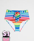 With an adjustable sash tie-front at the waist and a figure-flattering cut, this rainbow striped high-waisted bikini bottom from our ModCloth namesake label is all about elevating the details. Featuring an all over print of neon-hued rainbow stripes, contrasted by thin white stripes throughout, this swimsuit bottom is without a doubt a must-have in your latest set-up in swimwear rotation.