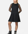 Dropped waist style with pleated skirt