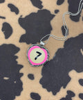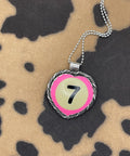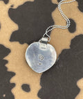 Handmade in California, this retro-inspired one-of-a-kind pendant features a heart-shaped piece of an authentic billiard ball, set in a sterling silver scalloped bezel with intricate twisted and beaded deco wire detailing. Suspended from an 18" sterling silver chain, this unique piece blends vintage billiards charm with bold symbolism.