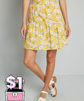 Spin and frolic your spring days away in breezy, timeless style when you rock this ModCloth namesake label skirt. Fully-lined and made from a bright yellow-hued lightweight cotton poplin weave, this high-waisted A-line boasts an exclusive vintage and Western-inspired white and black-hued floral print that was created in-house by our talented design team and exudes dreamy, 70s vibes. A tiered silhouette with a subtle ruffle hem adds flair to this ultra-feminine piece. Perfect for tucking a white crew neck tee into and wearing your fav lightweight cardigan and flats for a quintessential spring ensemble.