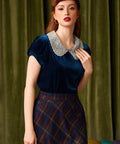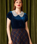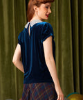 Sweet, soft, and just the right amount of retro—the Diner Delight Peter Pan Collar Velvet Top from our ModCloth namesake label serves up timeless charm with a side of shimmer. Crafted from plush navy velvet that catches the light like a soda-fountain dream, it’s topped with a pearl- and bead-embellished Peter Pan collar for that extra sprinkle of nostalgia. Slight puff sleeves and a keyhole back closure complete the vintage-inspired silhouette, making this top an instant classic for holiday soirées or anytime you crave a little sparkle.