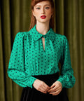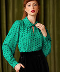 Cue the compliments—the Spot On Keyhole Blouse from our ModCloth namesake label is a retro dream come true. In a fresh minty-green hue dusted with playful black polka dots, this silky-soft blouse brings a pop of personality to your polished looks. The rounded collar and delicate keyhole neckline strike the perfect balance between sweet and sophisticated, while the long gathered sleeves add just the right amount of drama. Made from a stretchy polyester blend, it moves with you from office hours to after-hours flair.