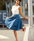 Twirl back in time with the Blue Embroidered Poodle Swing Skirt by Orchid Bloom! Featuring a classic full silhouette and an irresistibly cute embroidered poodle, this skirt brings all the retro charm of a 1950s soda shop straight to your closet. Made from a soft, stretchy blend, it's perfect for dancing the night away—or just adding a little flair to your day.