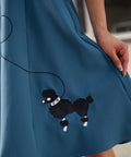 Blue Embroidered Poodle Swing Skirt