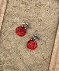 Lucky - Ladybug Earrings with Silver Bow Detail: Handmade Polymer Clay