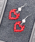 Tattoo - Flaming Heart Earrings with Dice Detail: Handmade, Polymer Clay