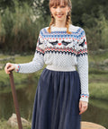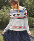 A sweater so sweet it could melt even the iciest of hearts. The Golden Days Raglan Sweater from our ModCloth namesake label wraps you in vintage-inspired warmth with its charming pattern of hearts, snowflakes, and blackbirds against a soft cream base. The classic raglan silhouette offers a relaxed fit with a touch of nostalgia, while pops of red and blue keep it feeling bright and playful. Pair it with denim for weekend strolls or tuck it into a tulle skirt when you’re feeling a little extra—because cozy doesn’t mean ordinary.