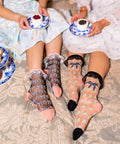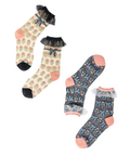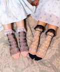 Our Bridgerton style ruffle sheer socks bundle includes both of our floral bow sheer socks with ruffles:
