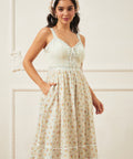 The GUNNE SAX for ModCloth Reyna Lace-Up Maxi Dress in Mia Bouquet features delicate twin florals on 100% cotton with cascading ribbon detail. A lace-up corset bodice, sweetheart neckline, adjustable straps, smocked back, and zipper closure ensure a comfortable, flattering fit. Fully lined and designed to sway with timeless romance.
