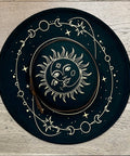 Vegan Felt Wide Brim Hat - Flat Top - Emerald - Celestial Sun/Moon
