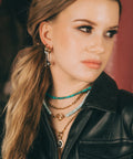 This charm is shown styled on our Chunky Rounded Huggie Hoop in Silver