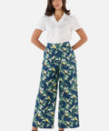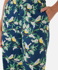 A breezy, full-length pant featuring a charming print of little Eastern Yellow Robins nestled among creamy Australian wattle blooms. With a high-waisted fit and wide-leg silhouette, these pants offer effortless style and comfort for sunny days and casual adventures.