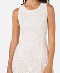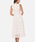 Sleeveless lace midi dress with a high, rounded neckline. A timeless and elegant style, perfect for your next special event.