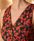 Equal parts sweet and slightly unhinged (just how we like it), this Instant Energy Faux Wrap Dress serves vintage pin-up charm with a mischievous twist. Juicy strawberries scatter across a dark backdrop while stealthy black cats prowl between the fruit, giving this print a wink-wink surprise the closer you look. The faux wrap silhouette creates a flattering V-neckline and cinched waist, while the full, swingy skirt invites a dramatic spin—or two. It’s the kind of dress that feels classic at first glance, then delightfully unexpected once you catch the cats. Perfect for date nights, dinner parties, or causing a little harmless main-character mischief wherever you go.