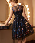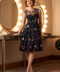 Step into a spell you won’t want to break. The Mystique Mirage Fit & Flare Dress from our ModCloth namesake label, floats between dream and drama with its sheer illusion neckline and exquisitely embroidered florals that seem to bloom straight out of the night. Rich navy mesh drapes over a softly structured bodice, while the fit-and-flare silhouette twirls with effortless enchantment. Delicate blossoms trail across the skirt like constellations in motion, creating a look that’s equal parts romantic, mysterious, and undeniably show-stopping. Made for candlelit soirées, curtain calls, and moments when you’d like to be remembered long after you leave the room.