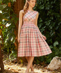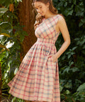Some dresses feel like a love letter to another era—and this one signs it in cursive. The Just Passing Through Time Dress from our ModCloth namesake label features a classic boatneck with a charming notch detail, a bias-cut bodice for a flattering drape, and a smocked waistband that cinches just right before flowing into a twirl-worthy skirt. Crafted in breathable cotton and fully lined for comfort, it’s finished with handy pockets (because, yes). The soft plaid print brings major vintage picnic energy—sweet, nostalgic, and ready for strolling farmers’ markets, garden parties, or pretending you’re late for a meet-cute. Equal parts polished and playful, this is effortless retro charm, bottled.