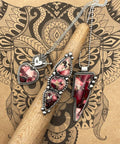 This bold one-of-a-kind pendant features a striking lightning bolt-shaped Red Buffalo stone with a beautiful bronze matrix. Made from stabilized dolomite sourced in Arizona, the stone showcases rich red tones with dramatic bronze patterns that create a powerful and eye-catching design.