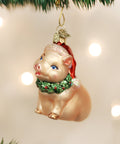 Pigs are considered by many to bring prosperity and good luck. This cheerful little piglet is dressed in a Christmas red cap and holly wreath and is doing her best to stay warm while spreading the joy of the season.
