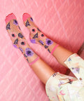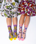 Calling all sunflower lovers! Get your dose of sunshine and brighten up your Spring wardrobe with both of our sunflower print sheer socks: