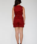 A bold and playful romper featuring a striking black and red check pattern. Designed with comfortable stretch and a flattering silhouette, this easy one-piece is perfect for making a statement while staying effortlessly wearable.