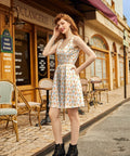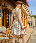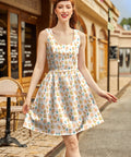 Embrace retro charm with our Snacks Shorter Length Fit & Flare Dress. Featuring a tossed pattern of carnival treats, this dress transports you to a playful vintage era. The fit & flare silhouette adds a touch of femininity, making it perfect for any occasion. Shop now and let your style shine!