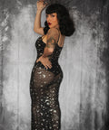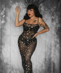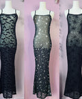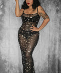 Sheer Hourglass Maxi Dress - Metallic Moon & Stars