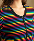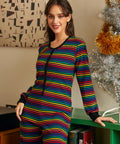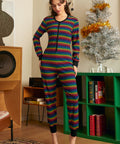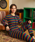 Turn the cozy all the way up to rainbow-level with this delightfully retro Rocking 'Round the Record Player Union Suit from our ModCloth namesake label. Made for movie marathons, spontaneous dance breaks, and answering the door for the delivery driver with zero shame, this one-piece wonder wraps you in stretchy ribbed comfort from neck to ankle. The vibrant multicolor stripes bring big “70s basement hangout meets pride parade” energy, while contrast trim and a classic button placket keep things snuggly and nostalgia-approved. Pull it on, press play on your favorite vinyl, and prepare to lounge like the legend you are.
