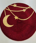 Vegan Beret - Burgundy - Gold Hanging Moon and Stars