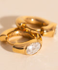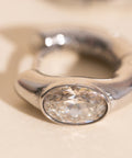 Oval Crystal Chunky Rounded Huggie Hoop Earrings