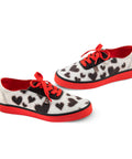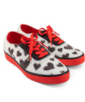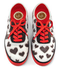 Soft faux-fur upper in a playful white-and-black heart print for a cozy, standout look