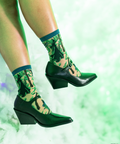 Elphaba Land Mushroom Black Sheer Crew Sock