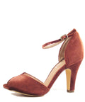 Leave it to the velvet, peep toe design to doll up a classic ankle strap heel. Wear the vintage inspired LOLA heels by Chelsea Crew to glam up your outfit.