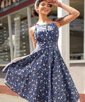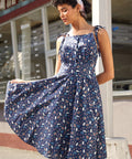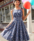 The Twirl Me Away Fit & Flare Dress from our ModCloth namesake label is a vintage daydream come to life, crafted in a rich navy cotton scattered with the most charming mix of tiny white bunnies, delicate florals, and dainty bow details for an extra dose of sweetness. The twirl-worthy skirt brings the drama (the good kind), while adjustable shoulder ties and a softly gathered, smocked waist keep the fit as easy as a Sunday drive. Finished with a smooth lining for all-day comfort, it’s made for sunny strolls, spontaneous dancing, and becoming the best-dressed person within a 10-mile diner radius. Equal parts playful and polished—just add a milkshake and a little mischief.