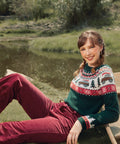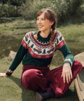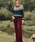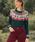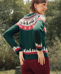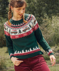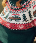 Channel nostalgic road-trip vibes in the Golden Days Raglan Sweater by our ModCloth namesake label. This festive knit features a forest-green base decorated with charming Fair Isle details—complete with snow-topped trees, vintage woodie wagons, and cozy cabin motifs in cream and red. A modern take on a classic holiday sweater, it’s soft, cheerful, and ready for every fireside chat or frosty stroll. Pair it with corduroy, denim, or your favorite mug of cocoa for instant main-character energy.