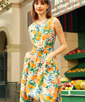 Consider this your official invitation to linger a little longer at the flower stand. The Market Day Dress from our ModCloth namesake label brings sunny-day charm with a classic fit-and-flare silhouette that twirls just right, a sleeveless bodice made for warm breezes, and a waist seam that creates an effortlessly flattering shape. A playful tie at the back lets you customize the fit (and adds a charming bow), while the lively citrus-inspired print delivers instant joy. Finished with roomy pockets for stashing small treasures—or an extra orange—this dress is ripe for compliments from brunch to golden-hour strolls.