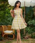 Fun, flirty, and totally retro: our skater dress is the perfect addition to your closet! Shown in our whimsical Pineapple print, this vintage inspired dress features a scoop front and back, elasticized waist in the back for ease of wear, a flirty a-line skirt with hidden side pockets, and a back zippered closure.