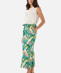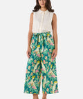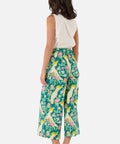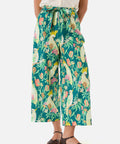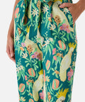 Teal green relaxed pant featuring a joyful Australian print of cheeky Sulphur-crested Cockatoos, with beautiful hand painted gum blossoms, banksia, bottlebrush & flannel flowers.