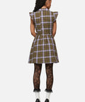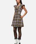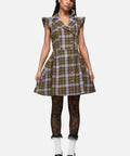 Step into eerie elegance with this dress, featuring a hauntingly soft woven custom tartan design. This piece is for a casual environment when you want to bring a macabre charm. Perfect for those who dress like ghost stories read in candlelight.