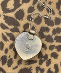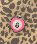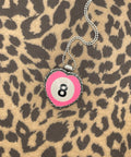 Handmade in California by Bog-Art-Studio, this retro-inspired, one-of-a-kind pendant features a heart-shaped piece of a rare pink 8-ball, set in a sterling silver scalloped bezel with intricate twisted and beaded deco wire detailing. Suspended from an 18" sterling silver chain, this unique piece is a perfect blend of vintage billiards charm and bold personal expression.