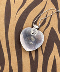 Handmade in California, this retro-inspired one-of-a-kind pendant features a heart-shaped piece of an authentic billiard ball, set in a sterling silver scalloped bezel with intricate twisted and beaded deco wire detailing. Suspended from an 18" sterling silver chain, this unique piece blends vintage billiards charm with bold symbolism.