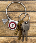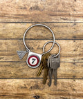 Handmade in California by Bog-Art-Studio, this retro-inspired #7 billiard ball keychain features a mini 7-ball set in a sterling silver serrated bezel with twisted deco wire detailing. Attached to a durable 4x2.5-inch stainless steel jumbo pin, it’s perfect for pool enthusiasts and vintage collectors. Symbolizing precision, skill, and luck, the 7-ball represents confidence, intuition, and success, making this keychain a stylish talisman for those who embrace life's challenges with determination.