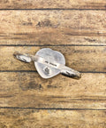 Handmade in California, this retro-inspired one-of-a-kind cuff bracelet features an authentic piece of a classic billiard ball, set in a sterling silver serrated bezel with intricate beaded deco wire detailing. Designed with an adjustable cuff for a comfortable fit, this bold piece blends vintage billiards charm with timeless style.
