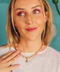 Oh Clem interchangeable necklaces can be styled in countless ways. Each necklace comes with a Small Charm Clasp. For more styling options, you can purchase different sizes/shapes of Charm Clasps and Necklace Charms separately.