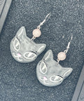 Cat Lover - Grey Kitty with Rose Quartz Beads Earrings: Hand-Painted Polymer Clay